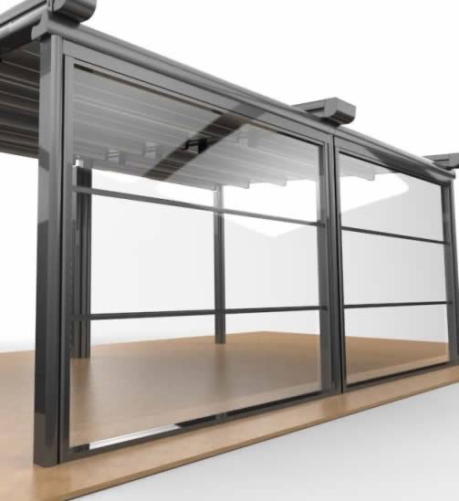 Guillotine windows are a glass system in which the glass opens vertically. Guillotine windows are perfect to enclose your patio, balcony or terrace and create and indoor-outdoor living space and seating area that you can use all year long. Adjust the level of the windows to your liking: leave it open and half open to enjoy fresh air inside or close it to use your outdoor space when it is raining or windy. Depending on your request, you can adjust the window manually or (semi-)automatically with a remote control.